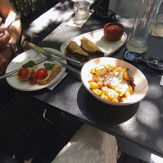 El mejor plato de ñoquis que comí hasta ahora después de los de mi vieja. Super suaves la masa, un corte más largo al tradicional y la salsa es una explosión de sabor. Tenia repollito de bruselas, champis y zapallito. Algo super importante es que no son ñoquis de papa sino de arroz