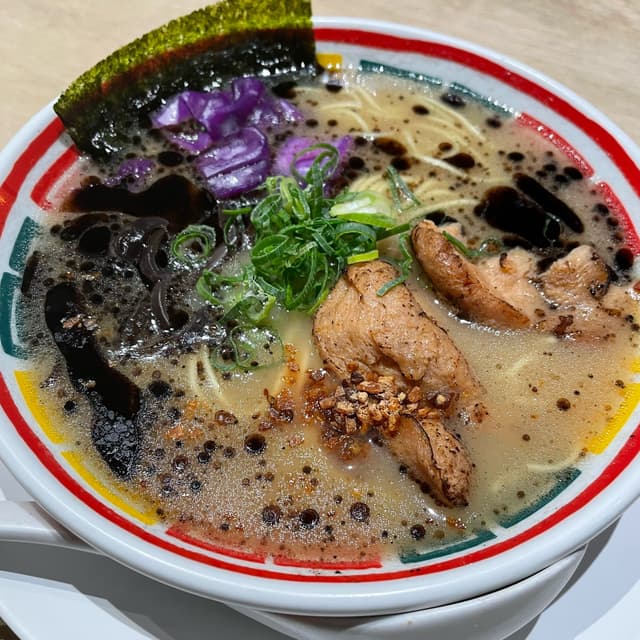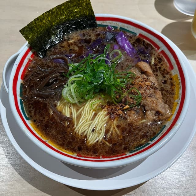 This restaurant is located in Harajuku on the second floor of the building, it was opened by a famous ramen chain called Kyushu Jangara Ramen which specialises in tonkotsu ramen. It’s not super big but it has enough seating for a few groups. The menu mostly offers ramen, one burger dish and one curry dish for mains and two pages of starters that are Japanese style or western style. I would have loved to try some of their starters but only got a main on this visit. This dish is a veganised version of their popular “Bonshan ramen”, which is tonkotsu ramen with fried garlic oil - my absolute favourite ramen flavour even before I was vegan. It was so delicious, it came topped with seaweed, mushrooms, purple cabbage and vegan chashu! The noodles were perfect and I was very satisfied at the end. I would definitely come back and try the other dishes. It was priced at ¥1,180. #veganjapan #japan #tokyo