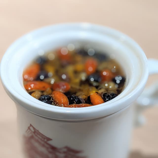 Not technically 'tea', this wellness cup is a brew of TCM powerhouse herbs like chrysanthemum flowers, black goji berries and red goji berries. Purported to slow ageing, support liver health as well as eye health. Surprisingly this was also packed by legacy tea merchant Pek Sin Choon for Lian Xin.