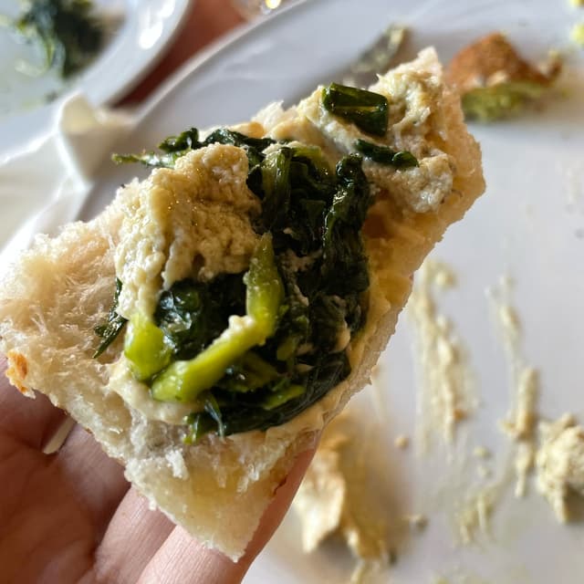 ho un po’ riso perché nel menu di una trattoria tradizionale (quindi pieno di bruschette friarelli menate) l’antipasto vegan era mediorientaleggiante. assolutamente non una lamentela però 😋 perché era mega pazzesco, a partire dai falafel, dal sapore freschissimo! hummus super tahinoso e mutabal anche super buona. ci ho farcito la focaccina liscia che portano come pane