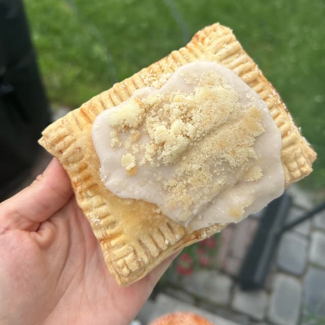 tiascaz3 months agoSee TranslationOmg this pop tart was to die for 🤤. The flakiest pastry and filled with the most scrumptious apple chai filling. Tasted like fall! The crumbles and icing on top were also delicious. Bit pricey but very worth it. #sweettooth0