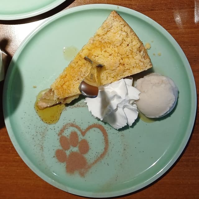 Torta di mele deliziosa accompagnata da un ottimo gelato, molto carina anche la presentazione. Il prezzo è in linea con quelli medi di Norimberga ma per noi italiani è un po' alto.