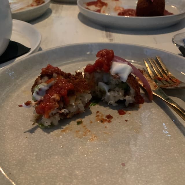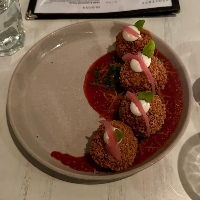 I loved this appetizer. Tasted like what you would get in Rome . Crispy rice exterior and creamy interior, this dish was perfect. Tomato sauce was fresh and flavorful.