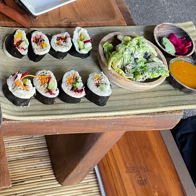 Lola2 years agoSee TranslationExtremely yummy experience to have raw sushi. The rice is made from jicama. Would recommend to try it!0
