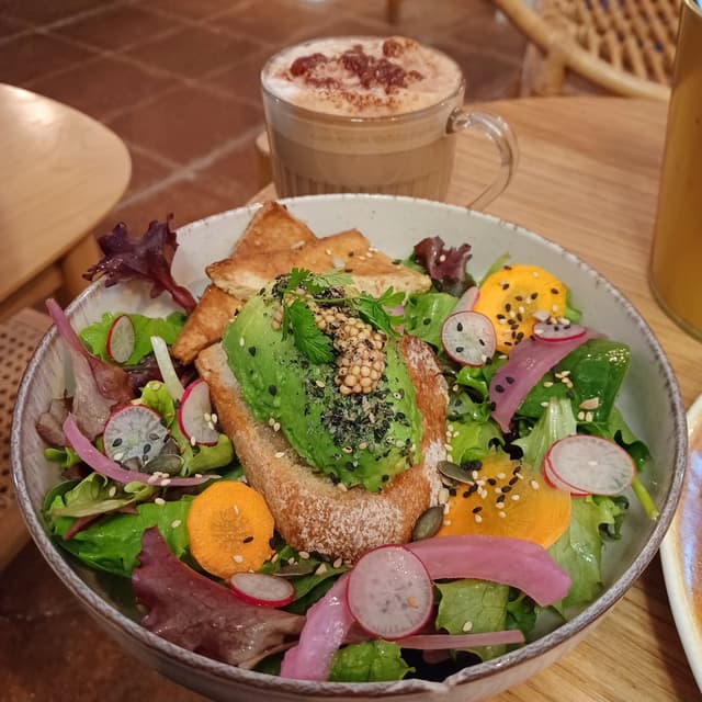 isabela991 year agoSee TranslationGood avocado toast with salad on the side. I like the mustard seeds on the avocado, it goes really well together.0