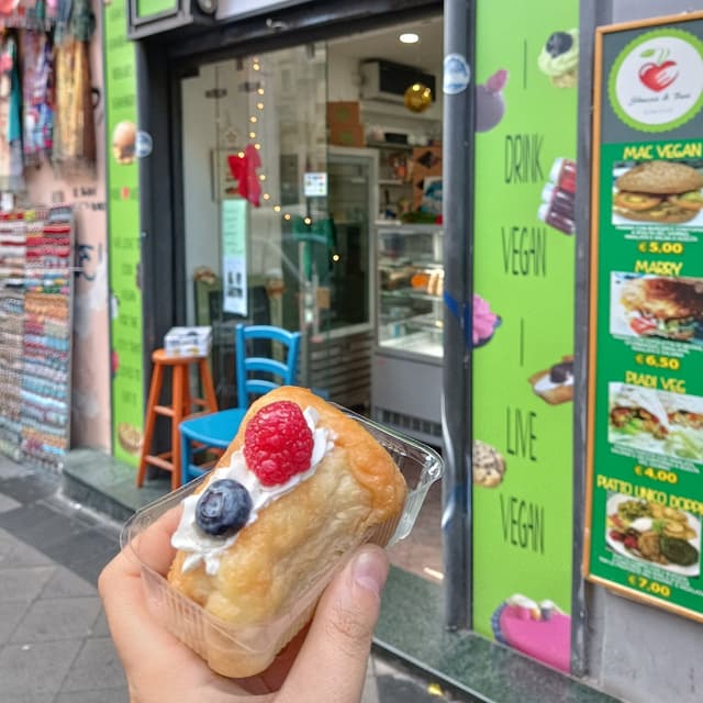 Buonissimo, anzi PERFETTO babà che ho provato durante la mia primissima visita a Napoli, sono rimasta a dir poco impressionata dalla bontà e al contempo leggerezza di questo dolce tipico. Già trovare un dolce tipico in versione vegana penso non sia facilissimo, quindi mi ritengo molto fortunata ad aver trovato questa delizia! Consiglio tantissimo in generale questo posto, dove ho anche preso un panino fenomenale e bello grosso che recensirò successivamente. #napolivegan #vegansweets #veganpastry #veganinnaples