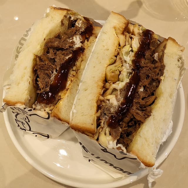 Loved this Japanese style sandwich! The beef had such an amazing texture and the bbq sauce was sweet and tangy. #bbq #veganisnotscary