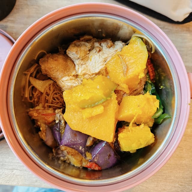 Talk about #abillionhacks 🙌 It’s pretty much the same thing as their #economyrice option but with #beehoon swapped in place for rice 🍚 You get the same choice of #mixedrice dishes at the same #cheap price 🤑 If you’re a #cheapvegan in the area looking for really good food, this has to be the place to go 😇 Unlike the #deathbyplastic complains I had about “Healthy Vegetarian” at Amoy, this one uses reusable cutlery and even has a sign that discourages the use of the wooden takeaway cutlery they provide! How could I not love this place more? 😋