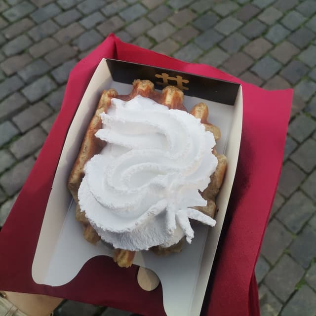 i reallyyyyy liked this waffle. the woman working there made it in front of us so it was super fresh. all of the waffles are gluten free but you couldn't taste it at all. the cream was really good as well. the plain waffles are 3.50€ and cream was 1.50€ which is a fair price i'd say