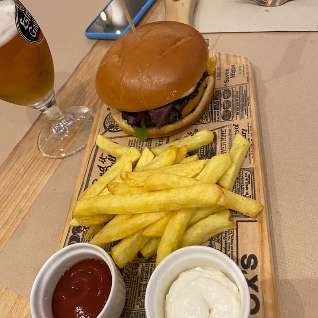 Una rica hamburguesa con buena presentación, rápida Atencion.