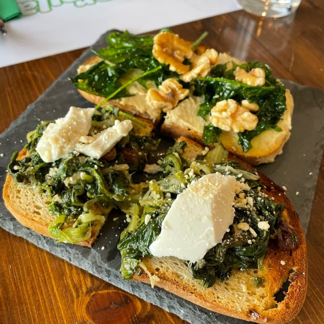 18/5/24 Buonissima bruschetta, ma per me rigorosamente senza uvetta (a pensarci mi vengono i brividi!) Gustosa e bella sostanziosa, costo €6 Con pane senza glutine #ostialido #lapuntarellapazza #veganrestaurant #nearrome #vicinoroma #vegan #bruschetta #scarola #burrata #formaggiovegan #vegancheese #glutenfree #senzaglutine
