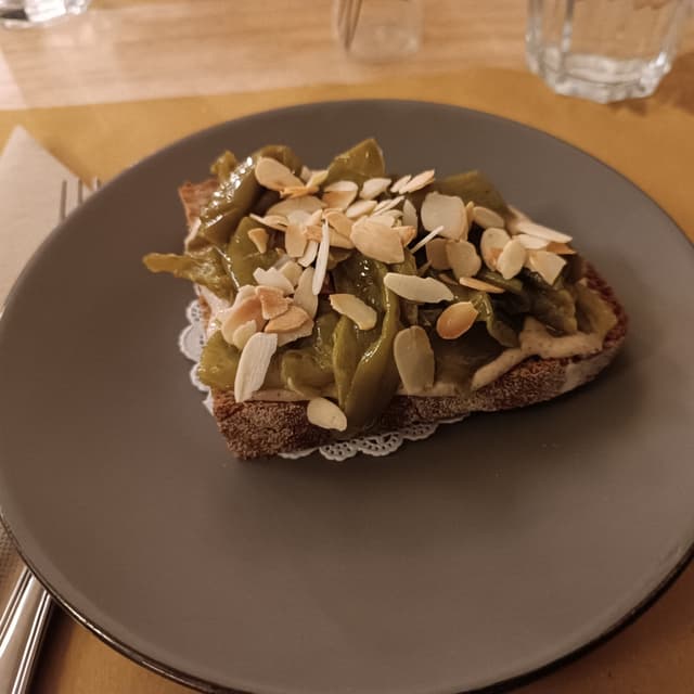 ennio143 years agoSee TranslationBruschetta molto gustosa con peperoni friggitelli e crema di anacardi fantastica0