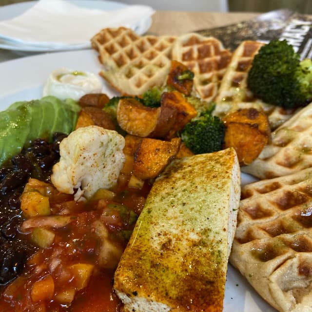 Is Buckwheat waffle with grilled tofu and roast veg vegan? Yes! Buckwheat waffle with grilled tofu and roast veg is certified vegan by the abillion communityVEGAN