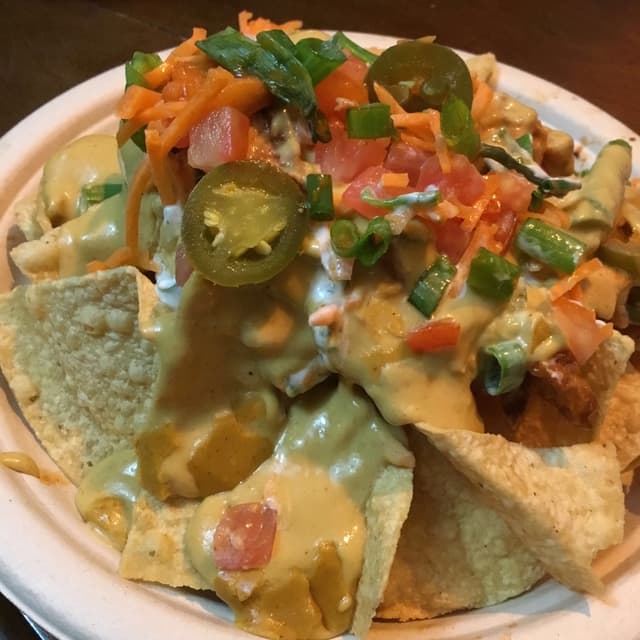 Travelled far and wide in the search to match the flavor but I can confidently state these are Hands down The Best nachos in the nation. The cashew cheese is a party of flavors spiraling in your mouth. Moreover, The chicknun strips are Gluten free!