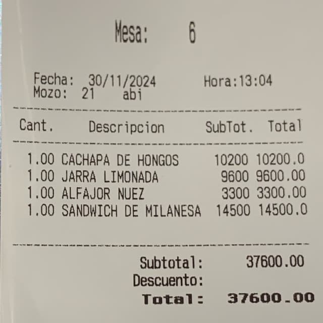 Tuvieron este plato en el menú especial "Parador Gordo Vegano" del 29 y 30/Nov/24. Estuvo RIQUÍSIMO y bien abundante. La ensalada parece una pavada para completar el plato, pero complementaba súper bien porque era fresquita mientras que la cachapa era potente, contundente. $ 10.200 Nov-24.