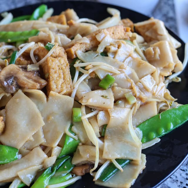 This dish was, again, massive. It was filled with two different types of rice noodles (udon), fried #tofu peas, and onions. It does come with meat, so make sure to substitute tofu instead. I think it may have added to the cost, which is a major thumbs down. The brown sauce is #veganfriendly, but to be honest, it doesn't have a whole lot of flavor. The noodles were a lot and really starchy. I would not order this again. I do appreciate the massive amount of tofu that was in this, you definitely get your money's worth ($14.95)