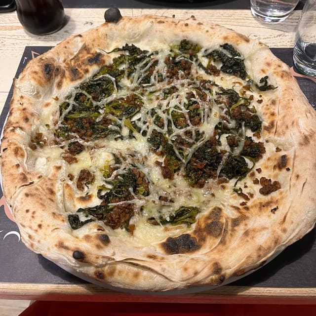 Pizza salsiccie e friarielli,impasto ottimo,cottura perfetta.