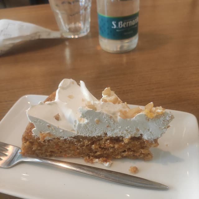 La carrot cake è buonissima! Bilanciamento dei sapori perfetto così come le consistenze e con una montagna di panna che la rende super decadent!! Consigliatissima