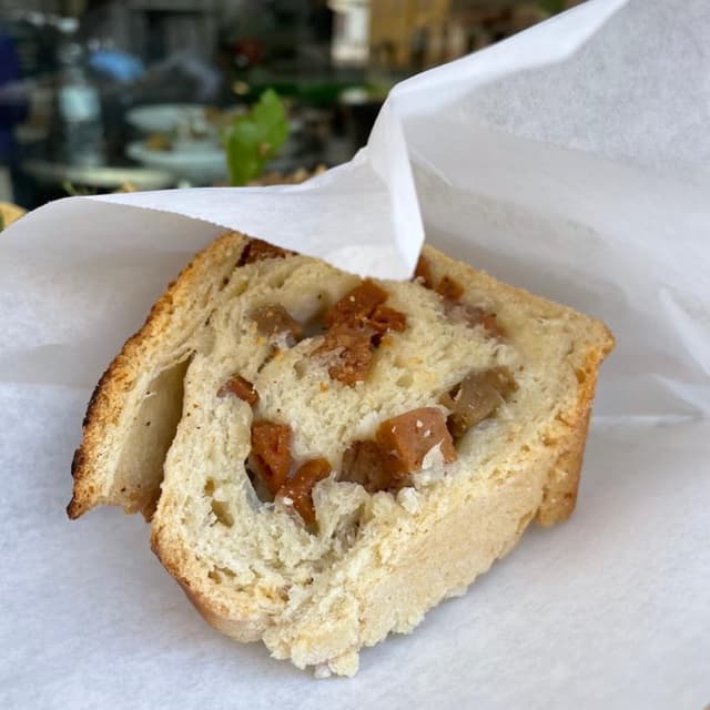 Casatiello morbido dentro e con una bella crosta fuori, impasto molto buono. Si vende a peso potendo scegliere tra quelle esposte in vetrina la fetta preferita. Consiglio di prenderla grande, assolutamente!!