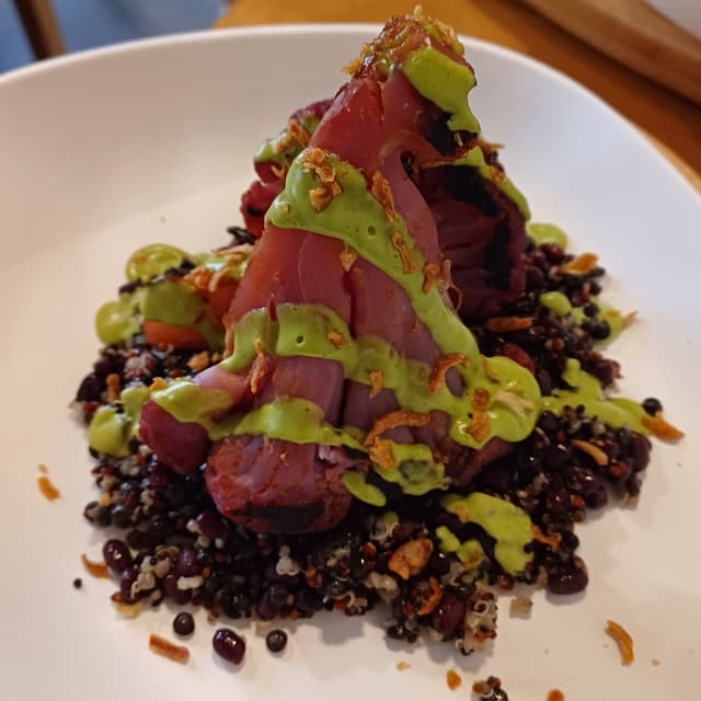 Da Giardí é sempre Veganuary perché la sua é una cucina 100% plant based. Locale di recente apertura, con prezzi abbordabili, conferma la zona Porta Venezia‐Centrale come zona vegan friendly di Milano. Questo è un piatto ricco di super food. Il cavolfiore viola caramellato (adoro tutti i tipi di cavolo!) é accompagnato da 2 legumi (fagioli azuki e lenticchie beluga) e da quinoa (pianta della famiglia cui appartengono spinaci e barbabietole). La decorazione verde è costituita da mayo alle erbe. Mi è un pó mancata la cipolla crunchy e ho trovato il piatto un pó troppo tiepido.