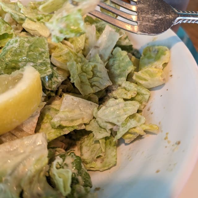 Okay, so usually I think restaurants give you more salad than dressing, this was totally not the case here, I felt the dressing was super strong and overpowering the lettuce in the salad. I had some of this and took the rest home for dinner, where I added some spinach and other greens in tasted great. Next time I might ask for the dressing on the side.