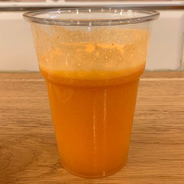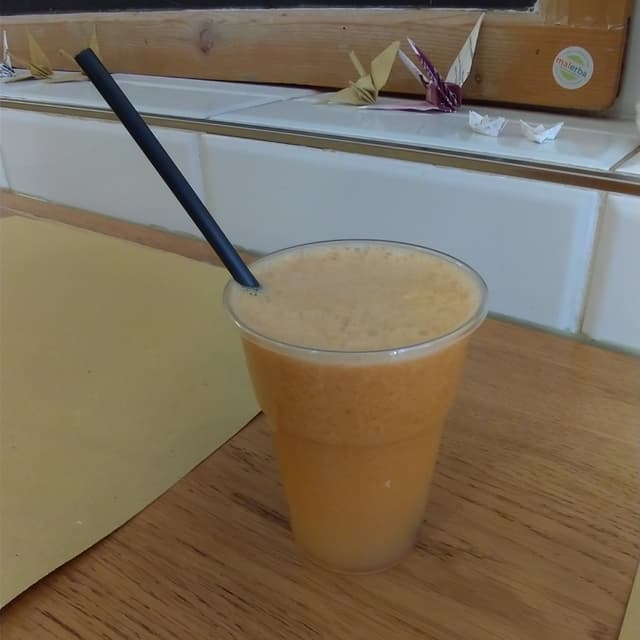 il colore in foto non rende, era ancora più vivo.. bellissimo!! (i bicchieri sono organici) davvero buono e ricaricante!!