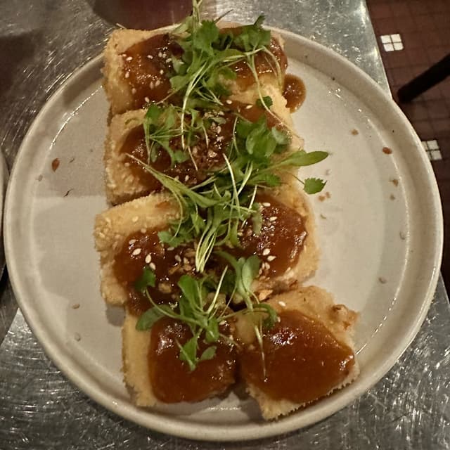MAD Batata2 years agoSee TranslationFried silken tofu with the most amazing lemongrass garlic sauce! So good.0
