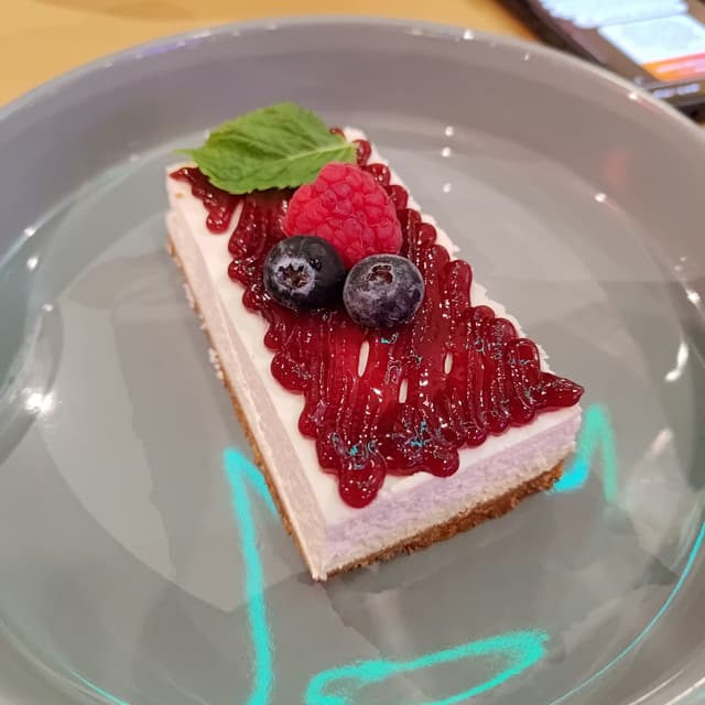Buonissima! Dolce al punto giusto, buona la base di biscotti, buono il topping di frutti di bosco.