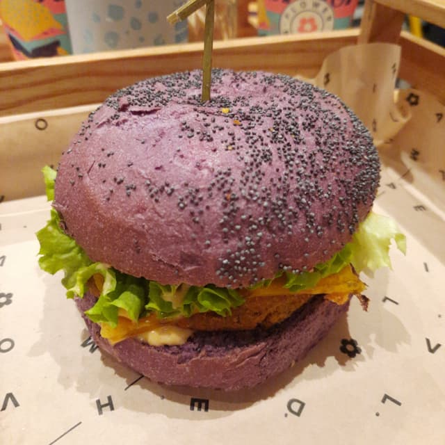 “Un fiore in bocca può servire sai, più allegro tutto sembra” cantavano Battisti e Mogol. Ed è proprio questa la mission di Flower Burger, la prima veganburgheria nata nel 2015 nel cuore di Milano, in continua espansione sia in Italia che all’estero. Il fiore come espressione di positività, gioia e amore. Un legame con la natura che si declina nelle tonalità dell’arcobaleno con una proposta culinaria 100% vegan: burger la cui caratteristica fondamentale è il colore. Si passa dal pane giallo fatto con la curcuma, al viola grazie alla carota nera fino all’amatissimo rosa, ottenuto grazie all’estratto di ciliegia. Il team di Flower Burger è sempre alla ricerca di nuove colorazioni naturali e di nuovi ingredienti per stupire e colpire i nostri clienti. Jungle Burger, Flower Burger e Cherry Bomb sono solo alcune delle proposte offerte accompagnate da patate profumate alla paprika, edamame o patatas buenas. Germogli di soia, tofu, ceci e quinoa sono ormai divenuti cibi del nostro quotidiano e Flower Burger sa come abbinarli per creare un burger dal sapore esplosivo che faccia innamorare tutti. Uno concept nato dall’idea di Matteo Toto, giovane imprenditore, che ha intrapreso un viaggio alla scoperta di gusti e sapori e alla ricerca del punto d’incontro perfetto tra l’hamburger e la cucina vegana. Una volta varcata la soglia del locale si è accolti da un’atmosfera friendly che ammicca alla cultura dei “figli dei fiori”. Il locale ospita pareti grafiche colorate e psichedeliche mescolate ad atmosfere del mondo del clubbing, dando vita a un divertente gioco di luci. Un sottomarino campeggia sulle pareti a ricordarci il Yellow Submarine dei Beatles e dietro ad una tenda colorata anni ‘70 si trova la cucina, il luogo dove nascono le nostre creazioni!