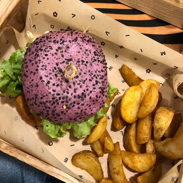“Un fiore in bocca può servire sai, più allegro tutto sembra” cantavano Battisti e Mogol. Ed è proprio questa la mission di Flower Burger, la prima veganburgheria nata nel 2015 nel cuore di Milano, in continua espansione sia in Italia che all’estero. Il fiore come espressione di positività, gioia e amore. Un legame con la natura che si declina nelle tonalità dell’arcobaleno con una proposta culinaria 100% vegan: burger la cui caratteristica fondamentale è il colore. Si passa dal pane giallo fatto con la curcuma, al viola grazie alla carota nera fino all’amatissimo rosa, ottenuto grazie all’estratto di ciliegia. Il team di Flower Burger è sempre alla ricerca di nuove colorazioni naturali e di nuovi ingredienti per stupire e colpire i nostri clienti. Jungle Burger, Flower Burger e Cherry Bomb sono solo alcune delle proposte offerte accompagnate da patate profumate alla paprika, edamame o patatas buenas. Germogli di soia, tofu, ceci e quinoa sono ormai divenuti cibi del nostro quotidiano e Flower Burger sa come abbinarli per creare un burger dal sapore esplosivo che faccia innamorare tutti. Uno concept nato dall’idea di Matteo Toto, giovane imprenditore, che ha intrapreso un viaggio alla scoperta di gusti e sapori e alla ricerca del punto d’incontro perfetto tra l’hamburger e la cucina vegana. Una volta varcata la soglia del locale si è accolti da un’atmosfera friendly che ammicca alla cultura dei “figli dei fiori”. Il locale ospita pareti grafiche colorate e psichedeliche mescolate ad atmosfere del mondo del clubbing, dando vita a un divertente gioco di luci. Un sottomarino campeggia sulle pareti a ricordarci il Yellow Submarine dei Beatles e dietro ad una tenda colorata anni ‘70 si trova la cucina, il luogo dove nascono le nostre creazioni!