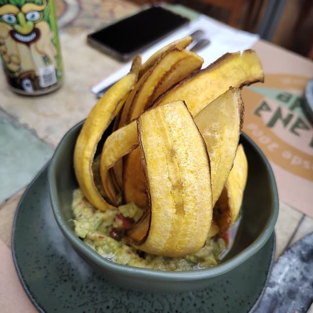 Delicioso!!! Banana muito crocante e guacamole saborosa.