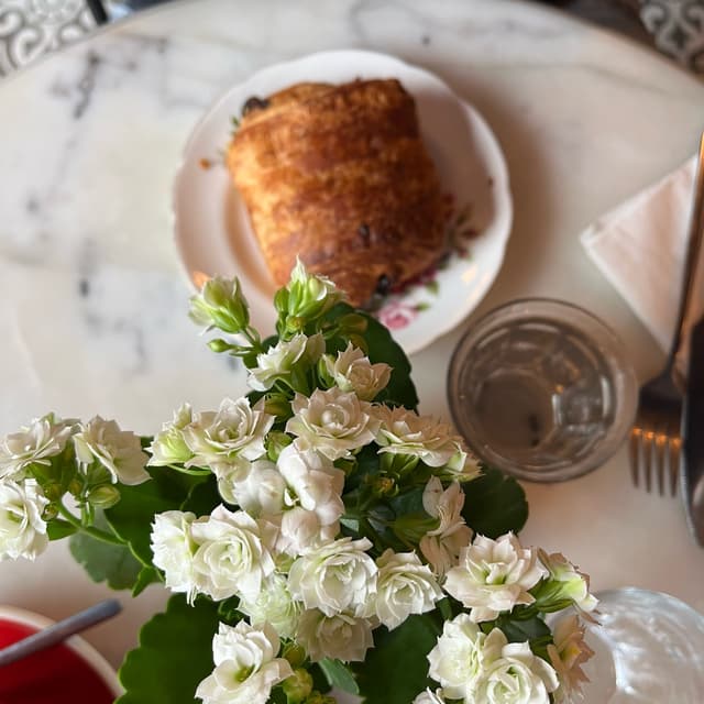🥐🍫 Super generous that the owner brought us a #chocolate #croissant as my partner was waiting for awhile for his soup. The soup came immediately after she brought this and then we were too full to eat it. We took it away instead. Served on a beautiful plate. So cute here. It was bustling during the vegan market. #veganisnotscary #saveveganrestaurants #veganrestaurant