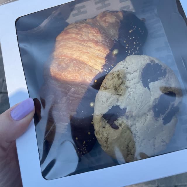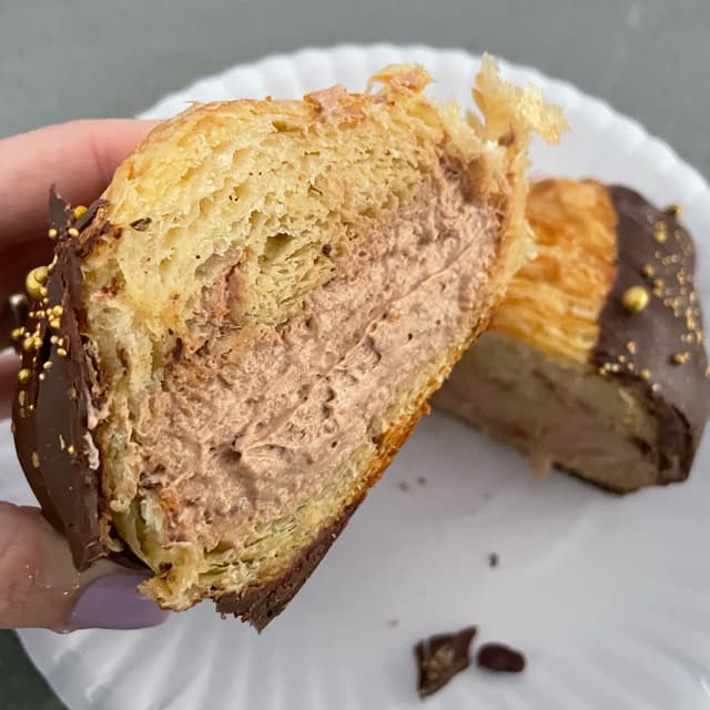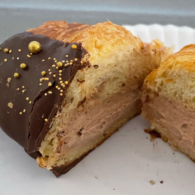I was just happy to find a vegan croissant. Little did I know I would be tasting this beautiful, fresh, perfect, croissant with so many layers it looks like it must’ve taken hours. Then, when biting into it there’s a chocolate cream type filling that just made my day! It’s perfectly sweet and its just so nice. My words are failing me.