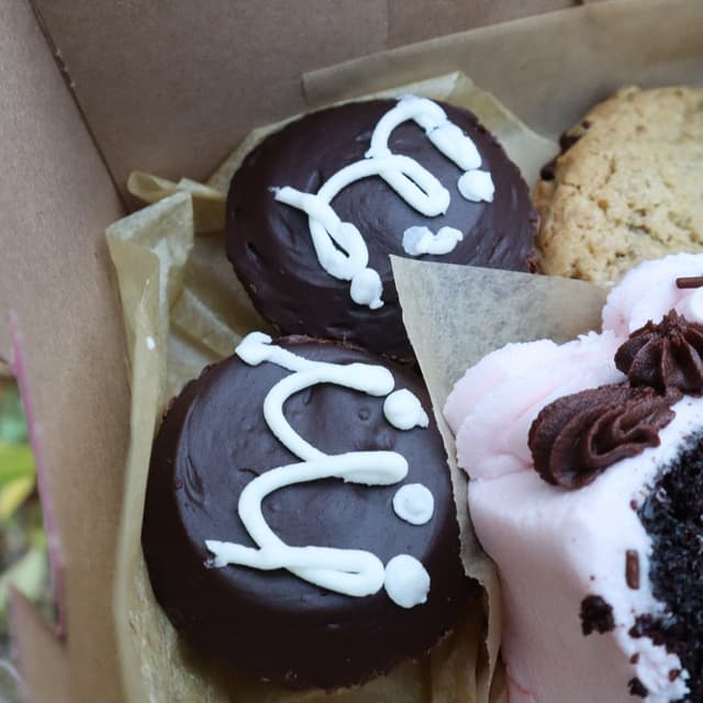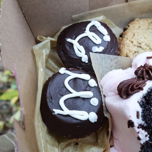These chocolate ho ho cupcakes🧁 are a PattyCake Bakery staple. They're one of their signature and popular items they sell almost daily and even have special varieties during the holiday. These cupcakes are a take on the Little Debbie chocolate ho hos, but #vegan and created with healthier #organic and less processed ingredients 🌿 These chocolate cupcakes are super super soft, rich, sweet, and are stuffed with vegan #dairyfree fluffy cream. They're priced at $3.75, which is a good value. They also have #glutenfree ones as well! #veganfortheanimals #abillionlove #ecotakeout #recyclable #cupcakes