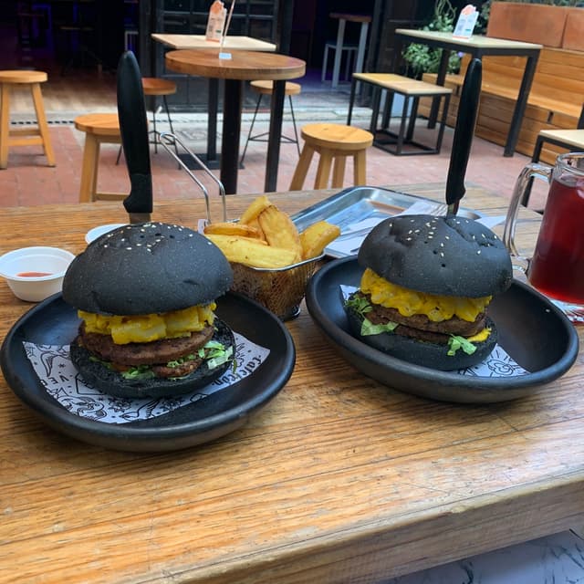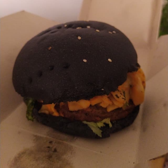 Estaba bastante rica, la "carne" sabe parecido a la de las hamburguesas que venden en la calle. Los macarrones no me sorprendieron de hecho creo que no hizo una gran diferencia en el sabor, pero la idea es original. Esta es su hamburguesa participando en el vegan burguer colombia. #veganburguercolombia #vegetarianoshoycol