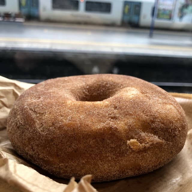Donut 1/5 I thought this was going to be my favourite out of the lot we purchased. It was probably one of my least favourites though it was still very tasty! It was topped with brown sugar and cinnamon. We paid £15 for a box of 6 donuts 😊