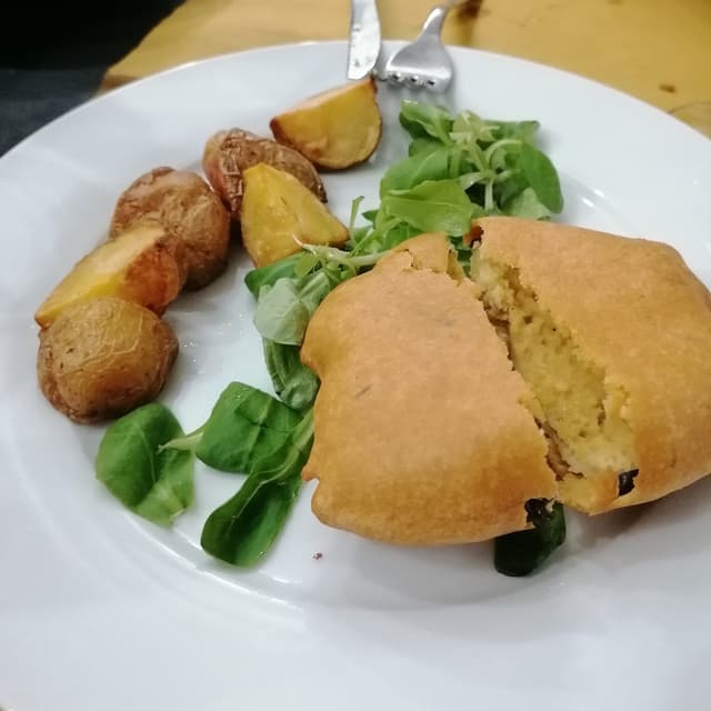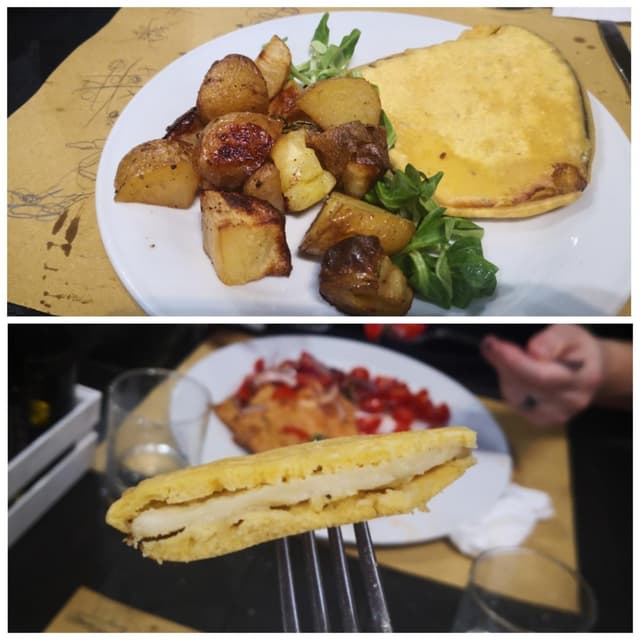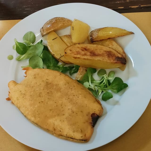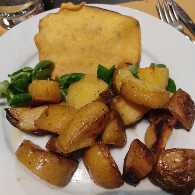 Questo è il piatto che mi ha meno entusiasmato, mi immaginavo una panatura come quella della cotoletta invece era una melanzana ricoperta da pastella di ceci. Comunque molto buona e le patate così spaccano
