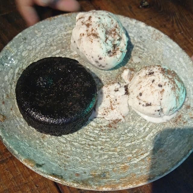 Coulant de chocolate... Delicoso... Se desace en la boca... Junto con las dos bolas de helado que estaban buenísimas #elhogar