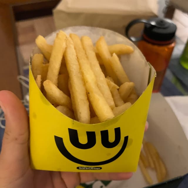 Estaba muy rica! Lástima que por delivery llega todo medio frío. $ 2.750 Abr-23. Viene la hamburguesa con papas.