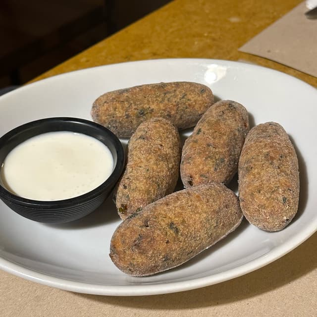 Crocchette di patate alla palermitana con qualche dettaglio reinterpretato, come una leggera panatura in superficie ed accompagnate da una mayo veg artigianale