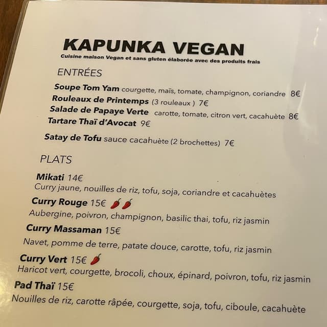 🇫🇷🇹🇭🍛 The fussy French’s father got this #redcurry bursting with🍆 #aubergine #mushroom #peppers #tofu and #thai #basil. 🍄🟫🫑🫛🌿It was labelled as the most #spicy 🌶️🌶️on the menu but it was very tolerable they said. I think they must tone the heat down for the French palate. Served with #rice 🍚of course. €15 Delicious #veganrestaurant run by a Thai team perhaps husband and wife. #paris #veganinfrance I’d love to try this too.