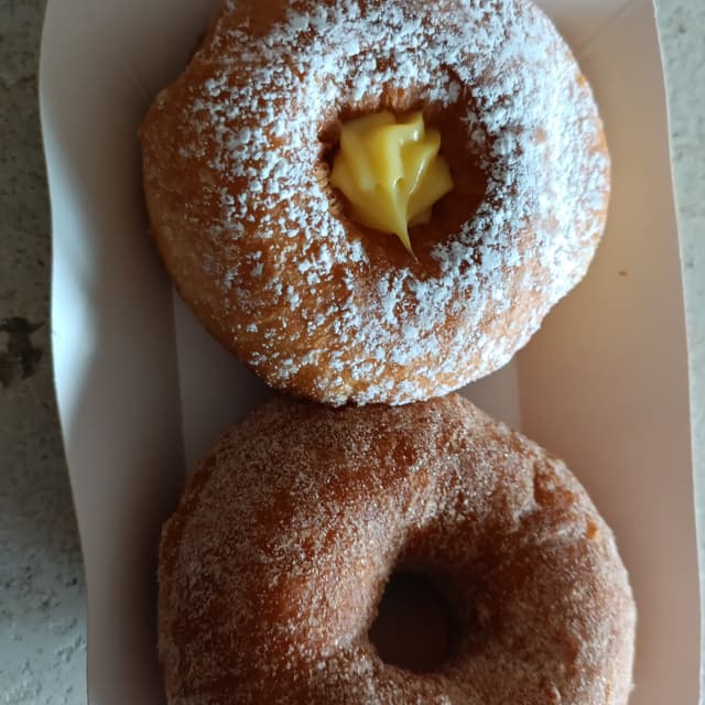 A lovely custard doughnut. Sooo good!! Doughnuts are the perfect size!