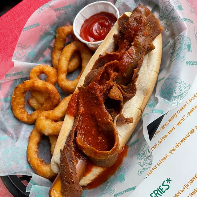 This is where all the cool punx hang out in Brighton. I got the dirty dog for a £8.90, it came with onion rings (can opt for fries too) and i enjoyed it with a pint of pale ale. I can only wish there was a punk vegan craft beer bar in my town when i grew up.