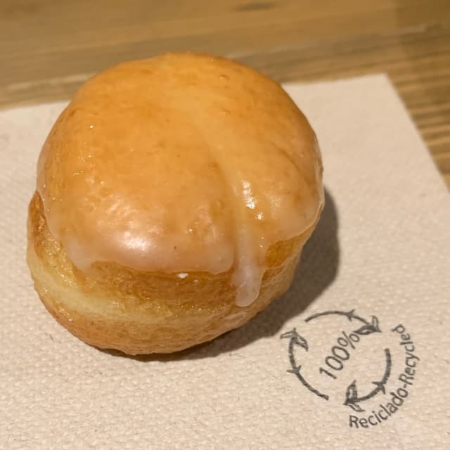Tuve la oportunidad de probar un donut clásico vegano de buen tamaño recientemente y debo decir que fue una delicia. La masa era esponjosa y suave, y tenía un sabor increíblemente fresco. El tamaño del donut era perfecto: no era demasiado pequeño ni demasiado grande, lo que lo hizo ideal como un snack dulce o para disfrutar en el desayuno o la merienda. Además, me gustó que fuera vegano, lo que significa que no contenía productos de origen animal, lo que lo hace una opción ideal para aquellos que siguen una dieta vegana o vegetariana. El glaseado que cubría el donut era también vegano y estaba hecho con ingredientes de alta calidad. Tenía un sabor delicioso y no era demasiado dulce. También me gustó mucho que el glaseado no se sintiera pesado y grasoso, lo que a menudo sucede con algunos donuts clásicos no veganos. En general, este donut clásico vegano de buen tamaño fue una experiencia increíblemente satisfactoria y definitivamente lo recomendaría a cualquiera que esté buscando una opción vegana para satisfacer sus antojos de dulces. ¡Definitivamente volvería a probarlo!