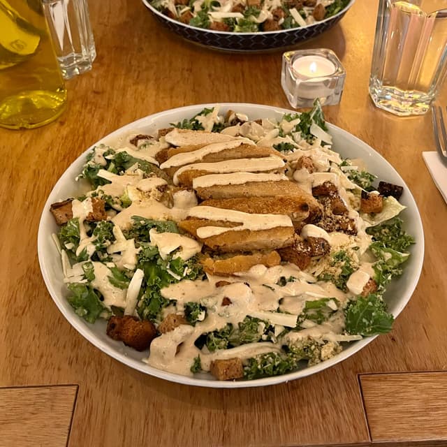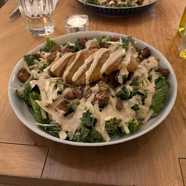 La mejor ensalada cesar que he probado. De sabor está buenísima. Viene mucha cantidad, no pude terminarla para una cena. Las dos veces que la he probado estaba tirando a salado.