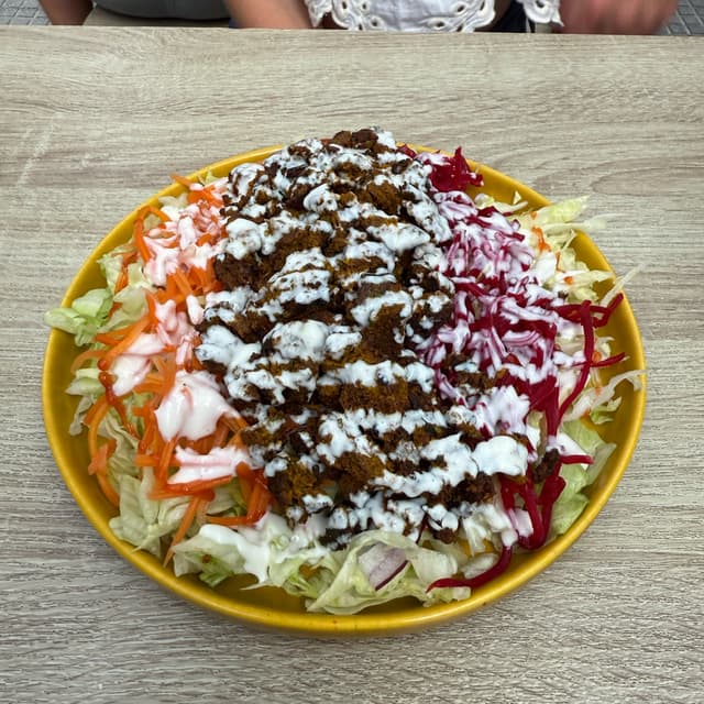 Really excellent salad! The seitan was boldly flavoured, which complimented the freshness of the rest of the salad. The dressing was a nice simple yoghurt sauce. @jennyfaye #jenandryesagavemoon