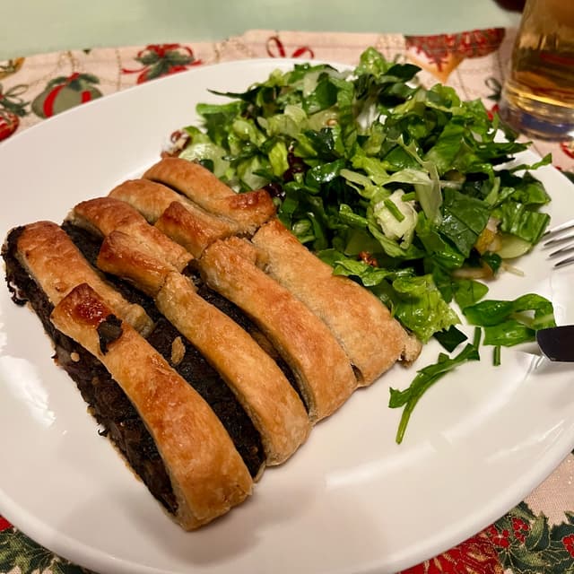 Para este año Na Tlali nuevamente nos consintió con este envuelto navideño. Es un hojaldre relleno de acelgas, hongos, arándanos y crema de nuez que estuvo riquísimo. Ahora no tuvieron porciones individuales pero la porción completa alcanzaba para unas 6 personas aproximadamente. Lo mejor es meterlo a calentar al horno para conservar lo doradito del hojaldre. Me encantó 😋 #veganuary #veganin2025 #veganfortheanimals #govegan #happynewveganyear