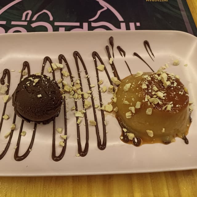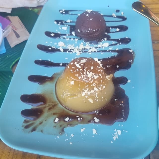 Raúl Trajkovska Gutiérrez2 years agoSee TranslationFlan de plátano con poco sabor y bola de helado de chocolate0