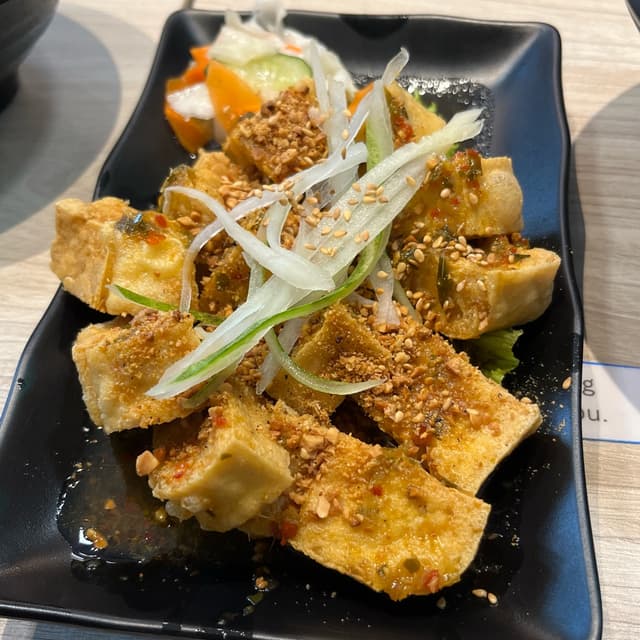 Tofu was soft and not fried very crispy, nice with the sauce and peanut topping.