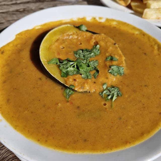 carmz2 months agoSee TranslationThis could work... The squash was good but the dhal, not so much. The flavours in the dhal just didn't work. The presentation is a bit off because the dhal overflows, maybe a deeper bowl but ya, also, a tasty dhal would be lekker.0